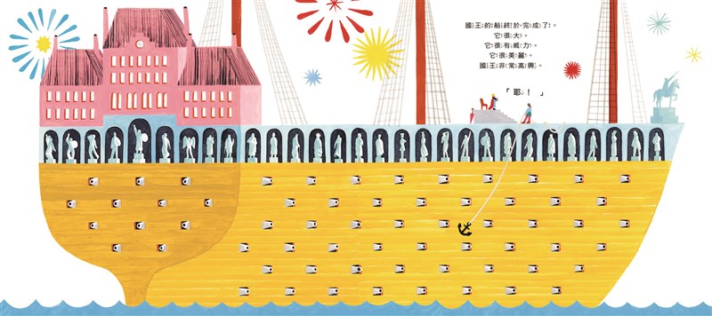 【星球童話】國王翻船了 文/火月桃桃 |2025.10.13 語音朗讀 42觀看次 字級 大 中 小 《國王的船》 ◎作者: →瓦勒里奧.維達利 ◎原文作者: →Valerio Vidali ◎譯者: →柯倩華 ◎繪者: →瓦勒里奧.維達利 ◎出版社: →東方出版社 圖/東方出版社提供圖/東方出版社提供圖/東方出版社提供 文/火月桃桃今天介紹的《國王的船》,以簡潔的圖像線條和情節的設計巧思,深入淺出的表演了一場幽默的政治秀,結局令人莞爾卻又值得深思。故事以經典的「很久很久以前」為開頭,有一個很有錢又很有權勢的國王,他擁有廣大無邊的領土、雄偉巍峨的宮殿、實力強大的軍隊,而且皇宮的花園裡,樹木長得又高又綠。可是這樣國王就滿足了嗎?不,還不夠,人的欲望是無窮盡的,何況他是一位擁有至高無上權力的國王,想要什麼就要什麼,想做什麼叫人民去做就好了啊!於是他下令建造了一艘世界上最大、最強、最美麗的船。為了建造這艘世界上最大的船,國王身邊有一位大臣迎合國王的期待,拿著雞毛當令箭,被國王授權發號施令,讓木匠砍掉更多的樹;為了建造最強的船,號令士兵把全部的大砲架設到船上;為了建造最美麗的船,下令所有僕人把皇宮裡所有的美麗雕像搬到船上。這些伐樹工人、士兵和僕人接到命令時,又是什麼反應呢?他們扯開嗓門對著國王和大臣齊聲大喊:「國王萬歲!」以表忠心,但私下交談中,卻又疑惑:「船不會造得太大嗎?」「船上放了這麼多東西,不會太重嗎?」但大家放心,馬上有旁人制止:「別胡說!不要批評!國王萬歲!」以免惹禍上身。人性的揭露多麼諷刺啊!這則寓言來自十七世紀時瑞典的真實歷史,明亮可愛的圖像充滿了黑色幽默,它沒有一個字在說教,卻字字透露出言語機鋒,以趣味十足的情節呈現嚴肅的議題。從畫面上可以看到,一邊是好大喜功的國王和狐假虎威的大臣頤指氣使、高高在上;另一邊是木匠、僕人、士兵俯首稱臣、唯命是從,兩者中間那一道寬廣的留白,象徵上下層無法交流的無形鴻溝,強化了畫面的戲劇效果。可是高高在上的國王和大臣,和生活底層的木匠、僕人、士兵,人物的比例是一樣的,似乎也在暗示著人人生而平等,沒有誰比誰重要,或誰比誰渺小,只不過是身分、工作、職業不同而已,剛好你的工作是國王、是參謀大臣,我的工作是伐木工人、是僕人、是士兵。誰也取代不了誰。走筆至此,其實大家都知道,一國元首和政府機關的設置原本就是為人民謀福利而存在的,他們依人民的需求制定行政規章、建設計畫、發揮功能,增進人民的福祉。可是,只要有團體,就會有人性的考驗。當上元首或機關首長的人,需要控制自私的心,對於隨著掌握最高權力而來的巨大利益,有著「說不」的勇氣,對於人民的意見需要保持寬容且強大的心,讓人民的心聲能真正直達天聽,以確保國家所有的事務,能像齒輪一樣運轉,按部就班的順利進行。故事中國王這艘劃時代的偉大的船,終於舉行了落水典禮。作者以重複性的韻律感和適當的留白,若是以音樂來比喻,畫面的聲量和音調層層遞進,讀者的視覺在不知不覺中被引導。最讓人驚嘆的留白,是最後保留了幾乎一整個跨頁的空白,保留了一點懸念,邀請大家一起翻開這本書,親眼見證一下國王的結局,保證讓你會心一笑。 前一篇文章 【徵文啟事】 下一篇文章 【小小詩人】好朋友 熱門新聞 01中秋草地音樂會 祈願世界和平2025.10.0702拚日能源自給自足 高市力挺核能2025.10.0703星雲大師全集【講演集】禪學與淨土─禪師與禪詩 6-52025.10.0704西藏珠峰突降暴雪 傳近千人受困2025.10.0705新馬寺佛光普照 大馬民眾慶中秋2025.10.0706曼城佛光山贈圖典 愛丁堡大學典藏2025.10.0707秋節送暖 佛光人進光復祝福2025.10.0908光復鄉重災區4校 今全面復課2025.10.0709三好校園化身賑災物資中心 菲師生協助包裝2025.10.0910川普警告哈瑪斯 堅持掌權將被消滅2025.10.07 訂閱電子報 台北市 天氣預報 台灣一週天氣預報 相關報導 【快樂塗鴉簿】野餐好時光【快樂塗鴉簿】彩墨山水【TAIWAN寶島 覽勝】台南孔廟【快樂塗鴉簿】旖旎月色【世界好奇妙】高跟鞋的奇幻冒險【小藝術家】我們這一班 作者其他文章【星球童話】從前從前 有一座池塘