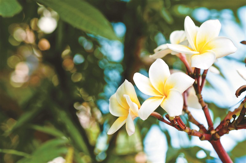 這五年間,它不負期望地開枝伸展,個頭愈長愈高大,已經超出兩百公尺的高度,枝幹也愈長愈粗壯,像是個青春期的青少年,肩頭也日漸開闊了。今年夏天,緬梔花枝頭如期開展繽紛的花朵,隔著窗子好像都能聽到她們迎接夏日時開懷的喧鬧聲。