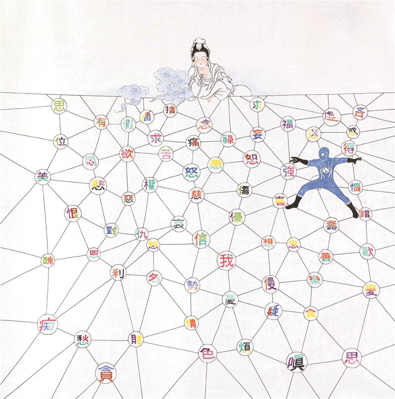 【人間菩薩的禪與纏繞──王卉娟創作展】 心中的菩薩 文/佛光緣美術館台南館提供 |2025.10.16 語音朗讀 30觀看次 字級 大 中 小 〈蘋果是什麼〉 綜合媒材、宣紙,63×63cm,2021 圖/佛光緣美術館台南館提供〈菩薩與蜘蛛人〉 綜合媒材、宣紙, 63×63cm,2020 圖/佛光緣美術館台南館提供〈文殊菩薩〉:綜合媒材、宣紙,136×63cm,2023 圖/佛光緣美術館台南館提供 文/佛光緣美術館台南館提供旅澳博士畫家王卉娟,闊別多年後,再度帶著她心目中的菩薩回到南台灣。此次展覽的靈感,源於閱讀中的停頓、日常生活的觸動,以及對現代社會與人際關係的觀察與省思。多樣的題材,不僅釋放了畫家的思緒,也呈現出她與筆下菩薩靜靜共享的時光。王卉娟笑說,她的畫「既多嘴又安靜」。多嘴的是對問題的細細覺察,安靜的則是菩薩的清淨本質。當生活中難免泛起波瀾時,菩薩便靜靜坐在我們身旁,傾聽心聲,提醒我們:無論何時,我們都不曾孤單。展期:即日起~11月30日 時間:10:00~20:00(免費參觀,周一休館)地點:佛光緣美術館台南館/佛光山南台別院 前一篇文章 【文史雜談】不聽諫言的太子 下一篇文章 【大師身影】 曲歌繞梁:音樂家李叔同 熱門新聞 01響應零飢餓 日光寺廣贈公益米2025.10.1002佛光山大明寺、宏法社 獲頒苗栗縣績優宗教團體2025.10.1003【走讀城鄉】 多元藝術大師楊英風及其美術館2025.10.1004香港佛光緣美術館 唐代宮廷服飾復原展2025.10.1005輝達進駐北士科 可專案設定地上權 2025.10.1006星雲大師全集【講演集】佛教與青年—佛教青年成功立業之道2-22025.10.1007【生活快門】全台最老郵筒2025.10.1008【美味食光】交換早餐2025.10.1009【人間小品】 歲月的浪淘沙2025.10.1010施莫會2025.10.10 訂閱電子報 台北市 天氣預報 台灣一週天氣預報 相關報導 【府城巡禮】 台南看西街教會【寶島踏查】神岡大夫第【藏在剪紙中的故事】日本法水寺日本館【書藝心語】有能之人【遊藝筆記】蘇東坡的黃州赤壁(上)【優游藝林】 探訪藝術桃花源:MIHO美術館 作者其他文章【心無界‧走入夢中佛的藝境──蔡宜璇創作展】人生無處 不道場【心無界‧走入夢中佛的藝境──蔡宜璇創作展】 夢中見佛【壺說八道──吳銘純石藝創作展】是壺非壺【台灣民俗藝陣采風——楊義勳個展】藝陣:民俗藝術的魅力【400府城的十分之一 ——黃鈿凱創作個展】畫我台南【墨緣躍彩寫丹心——王巧雲林隆旗書畫聯展】荷葉荷田田