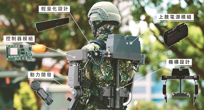 「2025台灣創新技術博覽會」昨起一連3天在台北世貿一館舉行。國家中山科學研究院展出「智慧輔力外骨骼系統」等6項研發成果,中科院研發人員現場穿戴軍用外骨骼,模擬單兵進行彈藥補給任務,輕鬆舉起20公斤重的105公厘戰車砲彈模型,展現科研成果提高單兵作戰能量。中科院表示,這套裝備結合台澎防衛作戰實際需求,未來可望成為士兵在戰場上靈活運動的助力。圖/中科院提供