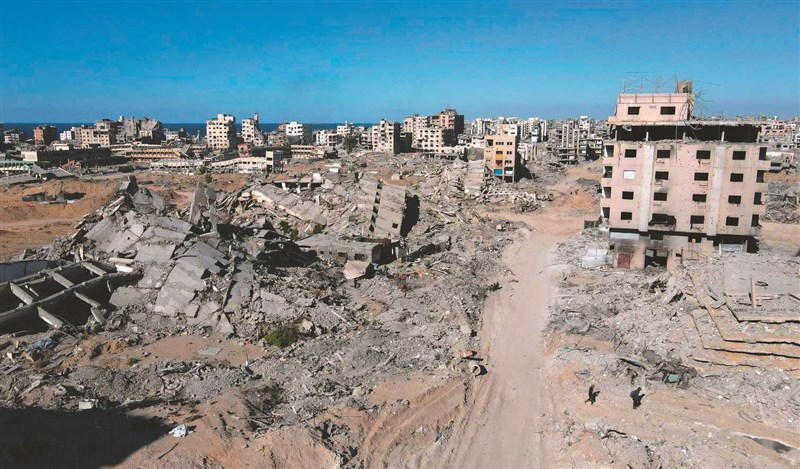 加薩馬瓦希塔區15日鳥瞰圖,該區2年來遭以色列轟炸。以色列與哈瑪斯日前 終於達成停火協議。圖/法新社
