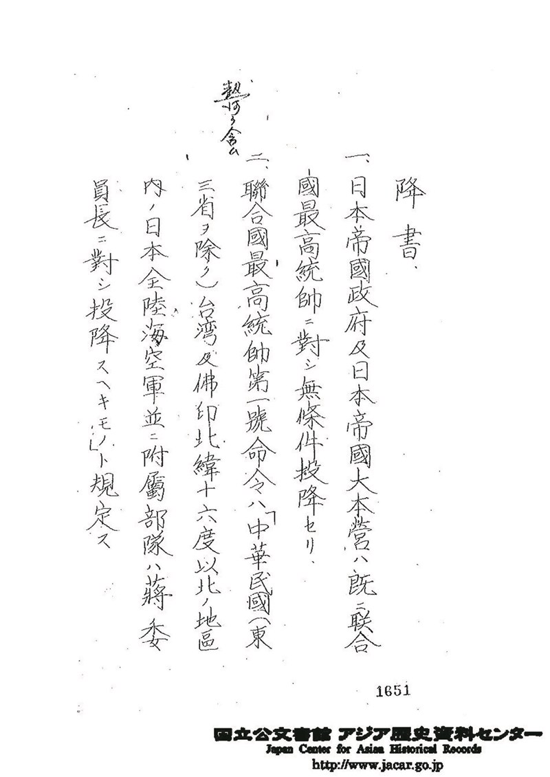 青年黃金發翻譯的降書日文副本(應非黃金發本人所寫原件)。圖/亞洲歷史資料中心