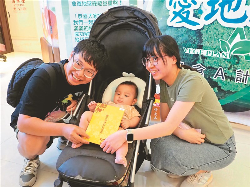 年齡最小的郭恆睿抱著寶寶祈福證書,模樣相當可愛。 圖/人間社記者陳沂詮