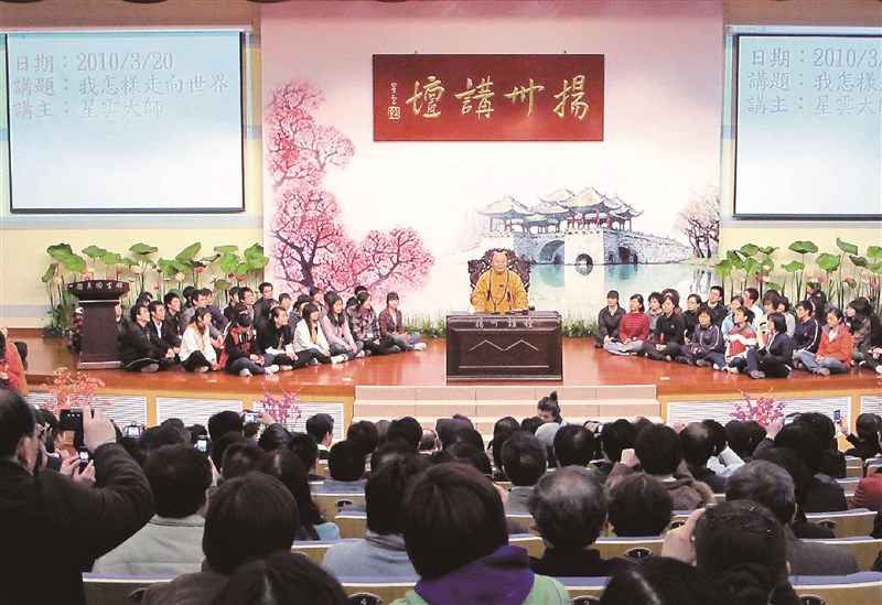 2010年,星雲大師首度應邀於鑑真圖書「揚州講壇」開講「我怎樣走向世界」,現場座無虛席。圖/資料照片