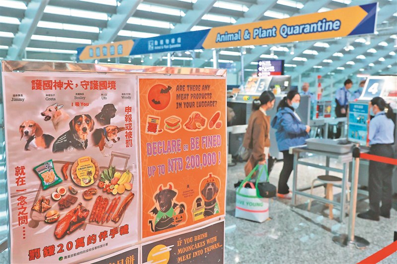 台中養豬場疑似爆發非洲豬瘟案例。農業部昨公告,全面禁止廚餘養豬,以及全國豬隻禁運、禁宰5天。桃園國際機場管制區內的非洲豬瘟手檢站(見圖)仍正常運作。圖/黃仲明