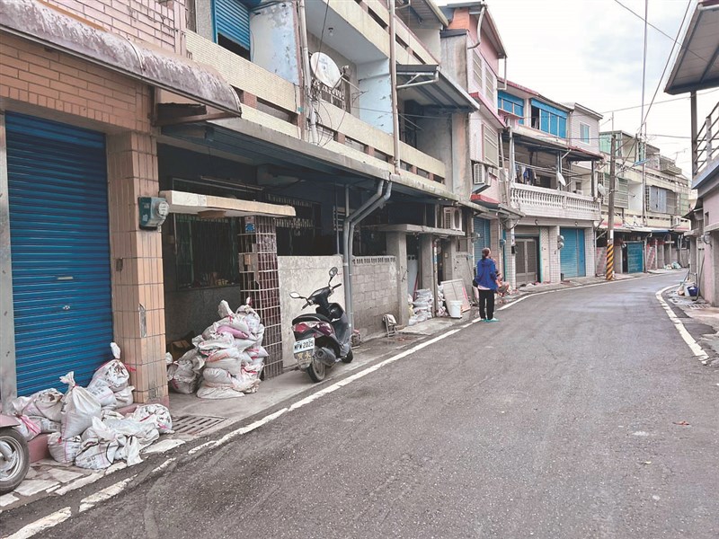 花蓮縣光復鄉敦厚路42巷中,各家戶門口堆放許多沙包。圖/林佳彣