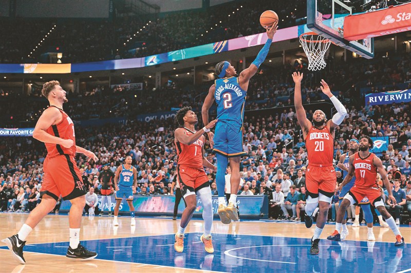 【記者張哲郢綜合外電報導】NBA美國職籃21日正式迎接新賽季開打,開幕戰衛冕軍奧克拉荷馬雷霆跟休士頓火箭廝殺到2度延長,雷霆靠著一哥亞歷山大(Shai Gilgeous-Alexander)關鍵罰球125:124氣走火箭。