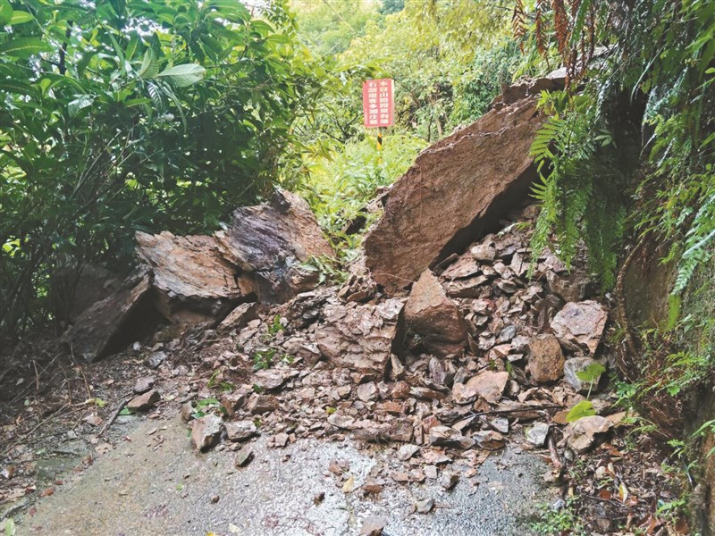 五峰旗風景區封閉 連日豪雨狂襲,造成宜蘭五峰旗風景區邊坡坍方,目前所有步道都不通,首次全區封閉,宜蘭縣政府提醒前往抹茶山(聖母山莊)的遊客及登山客須改道。圖/宜蘭縣政府提供