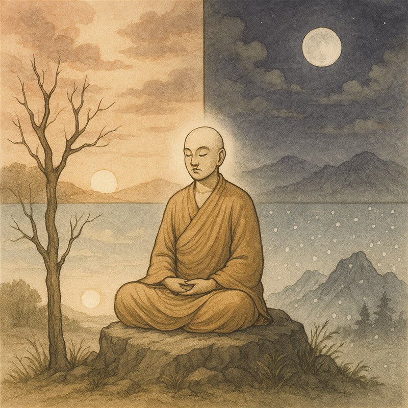在一個悟道禪師的境界裡,在空間上,東南西北都好;在時間裡,晝夜早晚都好;在氣候上,冷熱寒暑,無不是一個悟道者證悟的境界。圖/欣瀚 AI生成