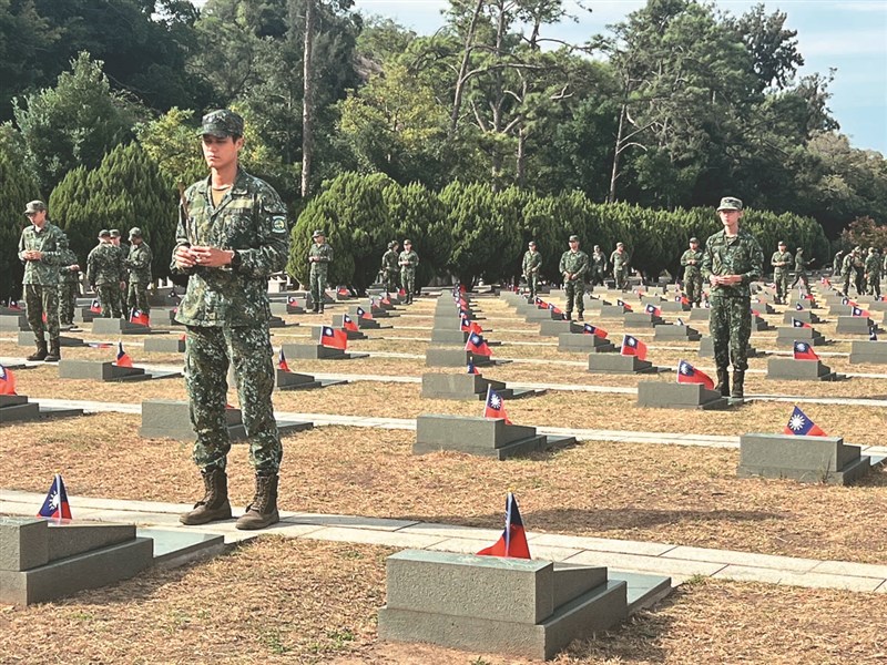 古寧頭戰役76周年,陸軍金門防衛指揮部昨在太武山公墓舉行追悼紀念活動。