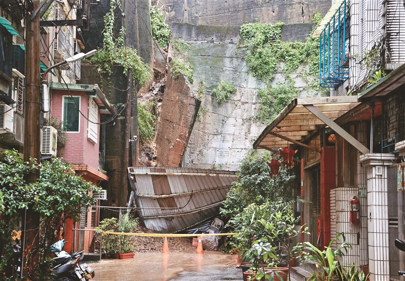 緊靠擋土牆的五樓住戶陳姓男子說,雨從上周開始下,前晚擋土牆有土石坍落,牆壁也裂開。記得前幾年擋土牆也發生裂縫,工務單位曾檢測,但不了解是否修復。撤離住戶陳姓婦人也說,擋土牆下方有鐵棚架,前天下午就有土石塊崩落發出巨響,接著排水管流出黃泥,隨後鐵棚架直接倒塌,大家嚇得趕緊撤離。