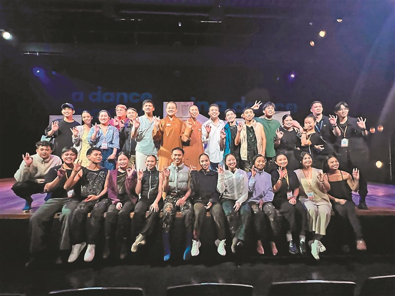 菲律賓佛光山光明大學舞蹈系師生與瑪麗舞蹈團,10日至19日在馬尼拉雅典耀大學Areté劇院聯合呈現舞蹈作品「舞動人生」。圖為如慶法師(第2排左6)與知勤法師(第2排左7)與演出人員合影。圖/佛光山萬年寺提供