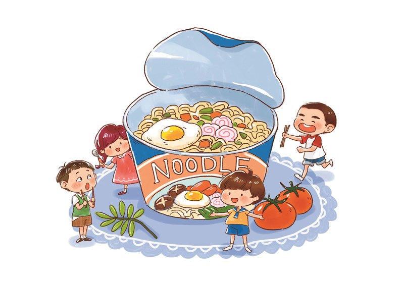 「阿淵,熱水盛少一點啦!」排在最後頭的阿弟仔緊張提醒;「你也盛太多了吧!」班長林婉婉也對黃樟不滿的說:「每次被你盛完熱水,後面就快沒有了。」「哪有!」黃樟回說:「剛好而已!」泡麵時間一到,教室不但充滿泡麵香,還像菜市場一樣鬧哄哄。