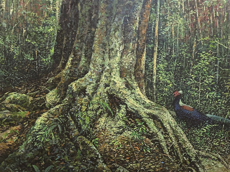 【寬鼎畫語】 佇立在歲月的森林 文/吳俊奇 |2025.10.27 語音朗讀 43觀看次 字級 大 中 小 〈佇立在歲月的森林〉:油畫,116.5×91cm,2025 圖/吳俊奇 文/吳俊奇在無聲的林深處,大樹一根根盤根如記憶蜿蜒;在千年的沉默時空裡,靜靜佇立。畫面核心是一棵古老的大樹根部,盤根錯節、穩如巨靈。右下角,藏著一隻台灣藍腹鷴,佇立於森林深處,一動不動地注視著外界。這不只是風景畫,而是一幅帶有生命哲學與自然崇敬意涵的藝術作品。 前一篇文章 【長期徵文】 下一篇文章 【學堂鐘聲】 誰的堅持,誰的原則 熱門新聞 01【閃文集】 一生擁抱自然——珍‧古德2025.10.2102佛光慈善音樂會 援助北宿霧重建2025.10.2203【小城故事】 兩冤家2025.10.2104佛光山新馬寺 為逾2200考生祈福2025.10.2105【歡喜收穫】 圓一個幸福園藝夢2025.10.2106東禪寺考生祈福會 助正念自信應考2025.10.2207談談蠟筆2025.10.2108粉蠟筆與油粉彩差別2025.10.2109極樂佛光童軍慶重陽 童行陪伴信仰傳承2025.10.2310大阪佛光人走入社區 結緣清荒神地車祭2025.10.21 訂閱電子報 台北市 天氣預報 台灣一週天氣預報 相關報導 【寰宇采風】 佛羅倫斯聖母百花大教堂【走讀城鄉】 從台北機廠到國家鐵道博物館【走進大西南】 怒山裡的傈僳族 (上)【Me, Then Blue──陳厚玏藝術創作歷程】 海韻之禮【東瀛遍路】上野公園清水觀音堂【歷史點滴】林口的蛻變 從茶園、磚廠到新市鎮崛起(上)