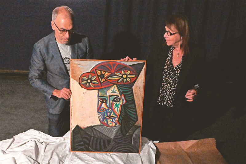 藝術大師畢卡索作品〈戴花帽的女人半身像〉,隱藏八十一年從未公開過。圖/美聯社