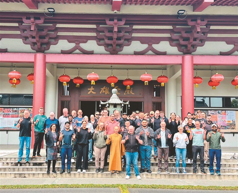 警官們感謝佛光山的用心安排,與滿信法師(前排左5)歡喜合照。圖/紐西蘭佛光山提供