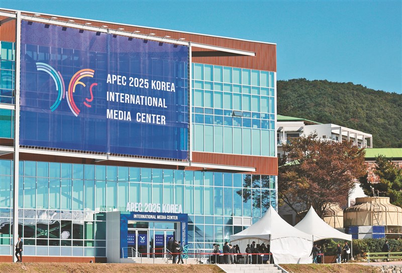 APEC峰會28日起於南韓慶州登場,非正式領袖會議則於31日開幕。圖為28日所拍APEC國際媒體中心外觀。圖/中新社