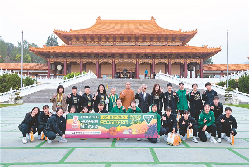 慧東法師(第2排左6)與北一女籃球隊全體,於成佛大道合影。圖/人間社記者張志誠