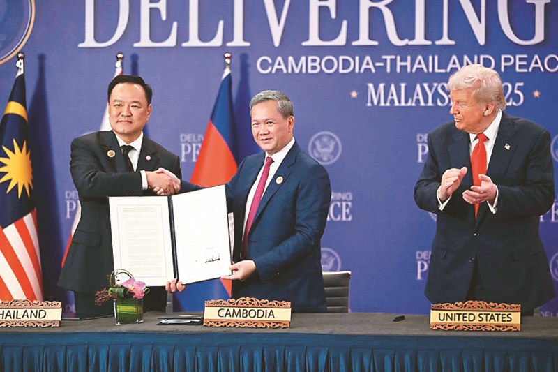 寰宇新聞 一周回顧 整理/林育辰 |2025.10.31 語音朗讀 40觀看次 字級 大 中 小 阿根廷總統米雷伊(前排左)領導的執政黨「自由前進黨」,26日在國會期中選舉勝選。圖/美聯社印度和中國大陸恢復直航後,旅客在廣州國際機場,排隊辦理直飛加爾各答的航班登機手續。圖/法新社南韓總統李在明(右)29日與美國總統川普(左)會晤時,贈送川普一只新羅王朝王冠複製品。圖/法新社日本首相高市早苗(右)與美國總統川普(左)28日簽署協議,代表美日關係進入「黃金新時代」。圖/美聯社聯合國祕書長古特瑞斯28日警告,人類將超過《巴黎氣候協定》設定的目標。圖為巴西的COP30標誌。圖/法新社泰國總理阿努廷(左)與柬埔寨總理洪瑪內(中),在美國總統川普(右)見證下簽署和平協議。圖/法新社中共28日公布《十五五規畫建議》全文,指要「把握兩岸關係主導權」。圖為20屆四中全會現場。圖/新華社中國大陸國務院總理李強(左1)和東協輪值主席、大馬總理安華(右1),見證雙方簽署3.0版FTA。圖/美聯社 整理/林育辰10/26阿根廷川普加持 執政黨國會選舉大勝國會26日舉行期中選舉投開票,根據選舉委員會省級統計資料的結果,獲得美國總統川普支持的阿根廷總統米雷伊所屬的「自由前進黨」獲得壓倒性勝利,以40.8%的全國得票率明顯領先庇隆主義反對聯盟的31.7%,選舉結果預期有助米雷伊推動自由市場改革計畫,更被視為川普的利多。這場勝利不僅強化米雷伊的政治正當性,也讓他得以加速推動重振阿根廷經濟的激進改革,還有助於恢復投資人對阿根廷改革路線的信心。10/26印度與陸關係回暖 中斷5年恢復直航和中國大陸直航中斷5年,26日正式恢復靛藍航空營運首批加爾各答至廣州的航班,德里至廣州航班也預計在11月10日起開通,屆時靛藍航空廣州至印度每周航班量達往返14班,中國東方航空則將於11月9日起重啟上海至德里航線。受新冠疫情影響,印中直航航班於2020年初暫停,恢復直航不僅是一種物流便利,同時象徵兩國關係解凍,將促進更順暢的商業交易、旅遊業成長和外交活動,對於區域經濟整合也至關重要。10/26馬來西亞川普見證 泰柬簽署和平協議美國總統川普26日抵達馬來西亞東協峰會現場,見證泰國、柬埔寨簽署「和平協議」,兩國同意停止一切敵對行動,從邊境地區撤除重型武器,共同進行邊界勘測;泰國並計畫在無爭議區域設置圍欄,展開聯合掃雷行動以及共同打擊跨境詐騙集團。川普同日分別就貿易及關鍵礦產議題,與泰、柬及馬來西亞領導人簽署互惠貿易協議;華府希望藉此應對貿易失衡問題,並在中國大陸收緊稀土出口之際,推動供應鏈多元化。10/28日本高市早苗會川普 簽貿易、礦物協議首相高市早苗28日在東京會晤美國總統川普後,二人簽署兩份文件,一份代表美日關係進入「黃金新時代」,另一份涉及關鍵礦物。這些協議目標將部分之前達成的貿易協議內容正式化,其中包括日本承諾出資5500億美元(約新台幣16.8兆元)於美方項目。高市說,已與川普重申台灣海峽和平穩定的重要性,並將增加國防預算,回應川普要求盟友分擔更多防衛責任的立場,藉此爭取美方理解日本加強防衛能力的政策。10/28巴西聯合國祕書長 直言巴黎協定破功聯合國氣候變化綱要公約第30次締約方會議(COP30),將於11月10日至21日在巴西貝倫登場,聯合國祕書長古特瑞斯28日警告,人類「無可避免地」將超過《巴黎氣候協定》設定的目標,未能限制全球暖化低於1.5℃以內,「災難性後果」如今已無可避免。古特瑞斯呼籲即將聚集在貝倫的各國領導人,減少碳排放仍至關重要,人類必須改變既有作法,愈是拖延減碳,亞馬遜、北極及各海洋越過災難性臨界點的危機就愈大。10/28大陸十五五規畫建議 強化科技自立自強中共20屆四中全會23日落幕,全會審議通過《十五五規畫(2026至2030年)建議》,28日發布全文以及中共總書記習近平說明內容指出,未來5年要強化科技自立自強,增強國內大循環,穩定經濟以抵禦國際不確定性;推動兩岸關係和平發展、推進統一,牢牢把握兩岸關係主導權主動權。習近平並指,2035年基本實現社會主義現代化,重要指標是人均國內生產總值達到中等發達國家水準,十五五時期是全面發力的關鍵時期。10/28馬來西亞抗美關稅戰 陸與東協簽3.0版FTA中國大陸和東協28日在吉隆坡簽署《中國─東協自貿區3.0版升級議定書》,增設綠色經濟、供應鏈互聯互通等5領域。值美國總統川普對全球發起關稅戰,大陸加強與東協區域經濟合作,除了共同宣示堅持多邊主義,更藉此增強經貿韌性和抗風險能力。大陸與東協雙邊自貿協定(FTA)最早在2010年生效,3.0版核心特徵是「由互降關稅向共建規則轉變」,是推動亞太經濟整合的重要里程碑。今年東協輪值主席國為馬來西亞。10/29南韓李在明會川普 協議投資美10.7兆總統李在明29日與美國總統川普舉行高峰會,峰會後川普透露已達成美韓貿易協議,南韓表示,對等關稅維持15%,南韓對美投資總額為3500億美元(約新台幣10.7兆元),其中2000億美元為現金投資,這象徵從7月開始歷經數月的美韓貿易談判,取得部分突破,川普還說南韓同意大量購買美國石油和天然氣。根據協議,南韓輸美商品的對等關稅稅率將是15%,輸美汽車和零件關稅從25%降至15%,與對手日本相同。 前一篇文章 寰宇新聞 一周回顧 下一篇文章 熱門新聞 01談經典之鑰 肯定我是佛2025.10.2602【白色墨水】喜色忘形