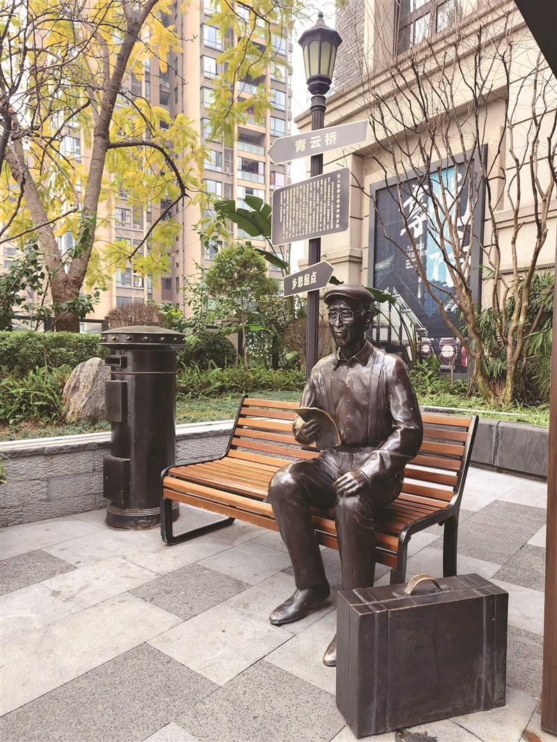 「小時候,鄉愁是一枚小小的郵票,我在這頭,母親在那頭……」余先生的〈鄉愁〉享譽全球,也是我非常喜愛的一首詩。這回來重慶悅來古鎮,恍然明白:原來余先生十至十七歲時住在悅來古鎮的朱家祠堂,而他就讀的青年會中學,離家十餘公里,住宿離家的日子,只能靠書信與母親交流,此處正是〈鄉愁〉一詩第一小節的創作背景。