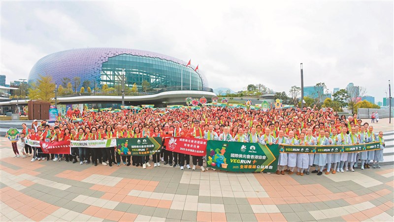 【人間社記者利嘉文香港報導】國際佛光會香港協會主辦、督導會協辦「VegRun全球復蔬公益路跑」,以香港啟德體育園主場館為起點,終點設於啟德空中花園露天劇場。此活動連續三年舉行,十月二十九日由佛光山港澳教區總住持永富法師帶領,香港佛光道場監院覺毓法師及眾法師、香港副協會長蕭灝東、督導長吳國維、各分會督導、會長及會員共四百三十八人參與盛事。