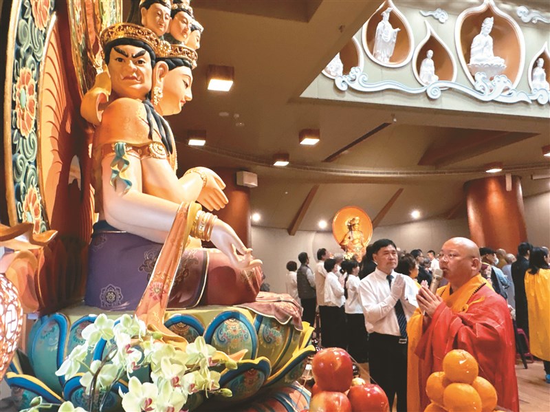 心保和尚(右)為十方禪林「十一面觀音」開光。圖/記者江俊亮