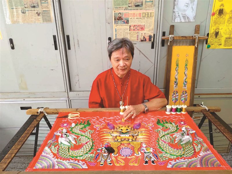 林全誠一針一線縫製神衣、八仙綵,技法細膩。圖/林全誠提供
