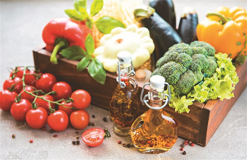 攝取蔬果可提供腸道好菌所需的益生元,而橄欖油富含的單元不飽和脂肪酸和多酚具有強大抗發炎作用,改善腸道菌叢平衡與黏膜健康。圖/123RF
