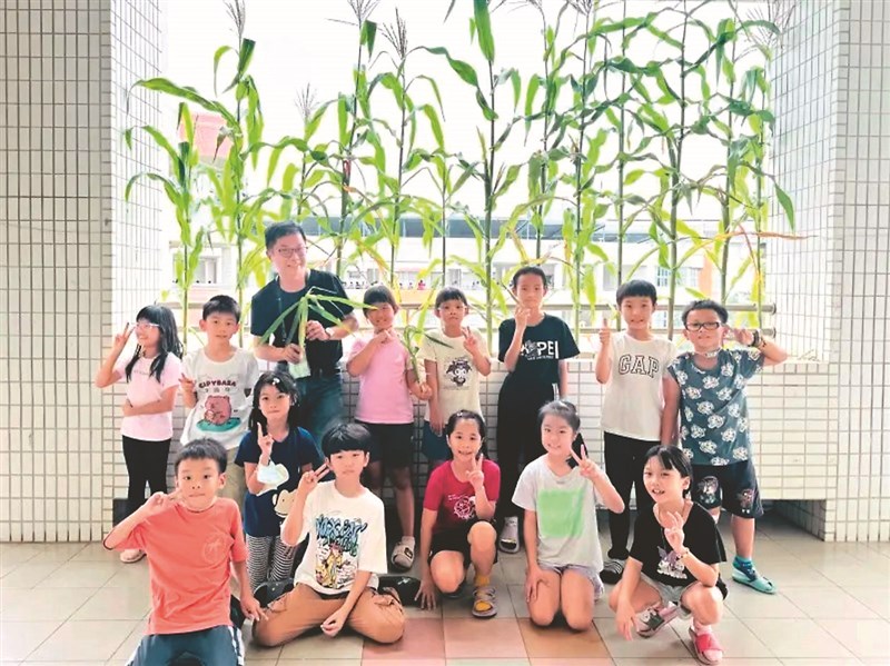 秋冬季節是玉米的生長期,高雄市新上國小的「教室小農」近來很高興看到辛苦種植的玉米長高逾1公尺。老師帶領學童用洗牛奶瓶的水當肥料,從種子開始澆灌、觀察、照顧,現在每一株都長得又高又壯,小朋友品嘗到玉米筍的滋味,更高興一株株筆直的玉米形成一面「玉米窗簾」,成為走廊一景。圖/高市府教育局提供