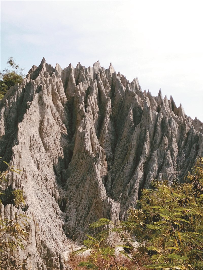 沿著木棧道,忽然眼睛一亮,貌似月球表面的迷你版月世界景觀就在眼前,幾名遊客正拍照打卡,模擬踏上月球的第一步。位於高處的軍事碉堡,如今已改建成三百六十度視觀景台,昔日用來觀察敵情的至高點,現在成了最佳瞭望台。