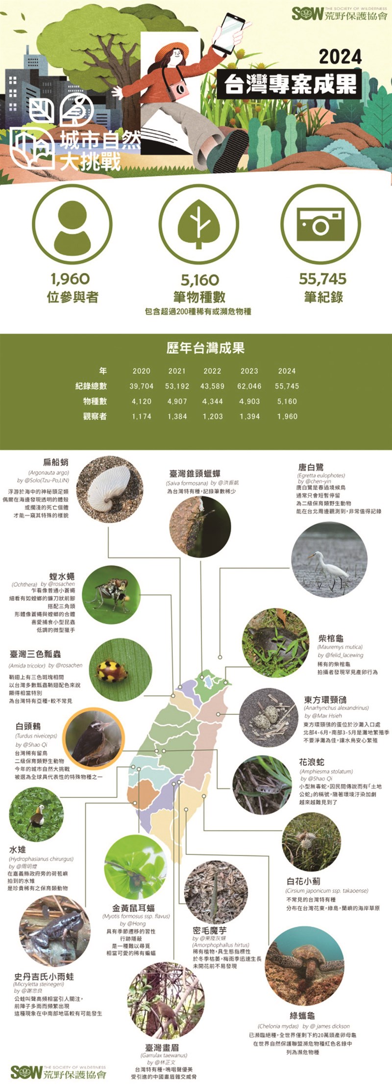 台灣愛自然觀察成果豐碩 文/李盈、李小敏 |2025.11.08 語音朗讀 57觀看次 字級 大 中 小 素人科學家在屏東霧台鄉認識當地植物。圖/芳筠上個月底才在屏東發現的台灣特有泰雅螽屬第3種螽斯。 圖/陳博偉、陳明淑、譚明凱經由台灣蜻蜓協會鑑別後,公告此生物中文名為「黃尾筊蜓」。圖/李宜龍、馬承漢去年荒野協會進行「城市自然大挑戰」成果斐然。圖/荒野協會官網不少公民科學家隨手拍照上傳,意外發現新物種。圖/翻攝自iNaturalist官網 文/李盈、李小敏台灣愛自然一向不落人後,「愛自然」自然也來到了台灣。「iNaturalist Taiwan」官方網站,目前正由國立台灣大學森林環境暨資源學系、國立嘉義大學生物資源學系與農業部林業試驗所共同開發與維護,提供喜歡探險與觀察環境的老師及同學們,能盡情在網站上展開不同的研究專案,並貢獻所觀察記錄,及所拍攝到的成果。例如高雄鳳新高中、新北市的石碇高中、景文科技大學,曾分別發起校內及學校附近的生態環境調查,讓師生們能在閒暇時間調查周遭環境,仔細認識身邊的花草樹木與昆蟲鳥類,並撰寫觀察日誌上網分享。除了學校外,也有許多民間的保育單位展開相關行動,像是荒野保護協會,會定期的舉辦自然觀察工作坊,讓義工帶著其他公民科學家與有興趣的朋友們,拿著手機,一同到台灣各個自然環境探險,觀測不同的生物棲息地。2020年開始,荒野協會更每年舉辦「城市自然大挑戰」,讓全台各地的觀察者都能分享新發現,數年來已記錄了超過5千多種物種(包含超過200多種的稀有及瀕危物種),對台灣的生態帶來極大的貢獻。喜歡學習與踏青的台灣學霸們,事不宜遲,是時候帶著一群國際大佬級生物學家(在網路上)陪伴著一起出門探險了。 前一篇文章 【帶著手機去探險】愛自然 造就公民科學家 下一篇文章 熱門新聞 01【閃文集】 駝峰天使2025.11.0402台中新社花海 重現經典卡通2025.11.0603【墨香流韻】一筆清香 一念無塵 梅適情2025.11.0204南天寺30周年口述歷史 登英國期刊專欄2025.11.0305【修行在人間】佛心的慈視62025.11.0206十方禪林40周年 教界高僧大德同賀2025.11.0307看見 電子 穿牆而過 2025.11.0308旅人心靈寶典《365日》 贈台中通豪大飯店 2025.11.0309【綠手指筆記】小花犀角 見證防疫小確幸2025.11.0210亞馬遜雨林動物奧祕2025.11.02 訂閱電子報 台北市 天氣預報 台灣一週天氣預報 相關報導 【帶著手機去探險】愛自然 造就公民科學家金礦開採&畜牧業 毀地球之肺海藻包材問世 可以吃 易分解 作者其他文章【帶著手機去探險】愛自然 造就公民科學家海藻包材問世 可以吃 易分解 老人健康嗎 且問臂圍知臂帶制服、紙臂帶 為營養缺失者把關