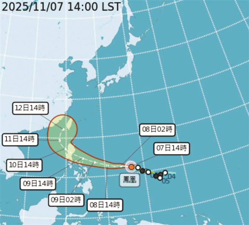 鳳凰颱風將增強為中度颱風,預測周日升級成強颱。 圖/中央氣象署提供