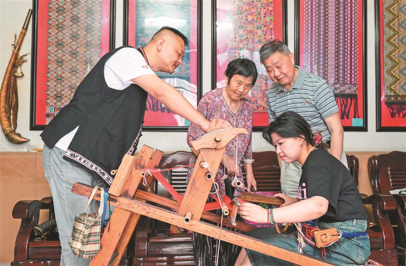 【西蘭卡普傳承人】唐洪祥 織錦裡的土家風情 文/記者程敏、杜子璇 |2025.11.09 語音朗讀 46觀看次 字級 大 中 小 織錦女工在龍鳳文化中心廣場現場製作西蘭卡普,展示非遺技藝。圖/新華社唐洪祥(後右)和老伴劉秀琴(後左)、兒子唐山(前左)、孫女唐鳴珂(前右)三代人都是西蘭卡普傳承者。圖/新華社唐洪祥對比設計圖樣和織錦成品。圖/新華社 文/記者程敏、杜子璇 夏日的午後,湖北省恩施州來鳳縣桂花樹社區濃蔭如蓋,一座位於半坡的三層小樓裡不時傳來木織機「吱呀」作響的聲音。走進這座名為土家織錦博物館的小樓,八十多歲的博物館負責人、國家級非遺傳承人唐洪祥和老伴劉秀琴在向大家講解示範土家織錦西蘭卡普的編織過程。只見劉秀琴坐在織機低的一端,用繞腰絆帶將裹棒扣好放置胸前,腳踏竹竿、手握梭刀,時而餵入緯線,時而用梭羅扣緊織錦面,邊挑邊打、連挑帶織,如此循環,看得眾人屏息凝神。唐洪祥則在一旁注視著老伴,眼含笑意。西蘭卡普是土家族傳統手工織錦,在土家語稱謂中,「西蘭」意為鋪蓋,「卡普」意為花,早先通稱「打花鋪蓋」或「土花鋪蓋」。土家孩子出生時外婆要送織錦,嬰幼兒時要蓋織錦,女孩子自小學習織錦,出嫁時在織機上製作西蘭卡普作為陪嫁。西蘭卡普記錄了土家族的風俗和情感,與土家人的生活息息相關,被譽為土家族的「五彩活化石」,二○○六年被列入國家級非物質文化遺產名錄。唐洪祥出生在「西蘭卡普世家」,從小就對西蘭卡普感興趣。一九七○年代,唐洪祥師從西蘭卡普傳承人葉玉翠,學習土家織錦技藝。隨著手中經線、緯線交織變換,織機旁的時光一晃眼就過去了數十年。西蘭卡普主要原材料是棉、麻、絲,主要以紅、藍、黑色線為經線,各種彩線作緯線,採用通經斷緯、反面挑織的傳統方法手工挑織而成。從根根棉線、絲線變成土家織錦,要經過二十餘道工序。由於花色複雜,做工精細,織者需全神貫注,若有經線或是緯線錯亂,就得拆掉重織。西蘭卡普圖案取材自山水風光、文化娛樂、生產生活等,圖案中還有一種特殊勾狀紋樣,比較典型的如八勾、十二勾、二十四勾、四十八勾。西蘭卡普構圖均衡對稱,紋樣豐富飽滿,色彩鮮明熱烈。紋飾多用亮色搭配,紅與綠、黃與紫、橙與藍,底色以黑色和藍色為主。「在變換緯線過程中,圖案顏色便會隨之發生相應的變化。根據織者的審美和心情,西蘭卡普也會變換出不同顏色的圖案。沒有兩件一樣的西蘭卡普。」唐洪祥說。為了讓這門精妙的手工藝代代相傳,唐洪祥悉心教授子女西蘭卡普織造技藝,舉辦多期西蘭卡普培訓班,開辦土家西蘭卡普織錦作坊,招聘工人從事西蘭卡普加工生產,讓更多人了解西蘭卡普的魅力。心懷對傳統手工藝的熱愛,唐洪祥撰寫了《西蘭卡普》、《土家織錦》等圖文專著,並收集了多種西蘭卡普實物及相關物品。二○一六年四月,由唐洪祥創辦的土家織錦博物館開館,館內收藏各個年代的織錦實物、織錦生產工具等物品百餘件。如今,博物館一樓已成為西蘭卡普培訓基地。喜歡西蘭卡普的人們在這裡忙碌起來,數十台大大小小的織機齊聲作響,歌唱著手工藝人對傳統工藝的熱愛,對美好生活的嚮往。新華社港台部供稿 前一篇文章 【苗繡傳承人】龍祿穎 針功夫 繡出錦繡天地 下一篇文章 熱門新聞 01【閃文集】 駝峰天使2025.11.0402南天寺30周年口述歷史 登英國期刊專欄2025.11.0303台中新社花海 重現經典卡通2025.11.0604十方禪林40周年 教界高僧大德同賀2025.11.0305旅人心靈寶典《365日》 贈台中通豪大飯店 2025.11.0306一針一線60載 林全誠繡出神韻人生2025.11.0307【傾聽你我他】別為金錢傷感情2025.11.0308看見 電子 穿牆而過 2025.11.0309【觀我望己】 追日,散策旅程(上)2025.11.0310【民俗資產】 山林守護者:阿里山受鎮宮2025.11.03 訂閱電子報 台北市 天氣預報 台灣一週天氣預報 相關報導 【苗繡傳承人】龍祿穎 針功夫 繡出錦繡天地【湘繡傳承人】江再紅 新創意 弘揚工匠精神【易水硯傳承人】鄒天然 硯雕藝術讓石頭成倍增值【湖筆傳承人】范玲英 用柔軟羊毫填平命運溝壑趙維晨 為機器人找到用武之地【自變量機器人創始人兼首席執行官】王潛 要發展要先活下來