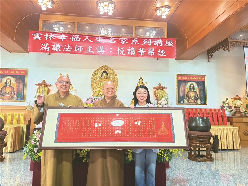 悅讀華嚴經 成為幸福安樂地球人 文/徐彩華、陳麗蝶 |2025.11.09 語音朗讀 56觀看次 字級 大 中 小 圖/徐彩華、陳麗蝶 圖/徐彩華、陳麗蝶 圖/徐彩華、陳麗蝶 文/徐彩華、陳麗蝶 佛光山雲林講堂十一月一日舉辦「雲林幸福人生名家系列講座」,邀請佛光山台北道場住持滿謙法師主講,主題「悅讀華嚴經」。以深入淺出的方式,帶領現場信眾及線上聆聽,認識佛陀講經說法的第一部經典經中之王《大方廣佛華嚴經》簡稱《華嚴經》。滿謙法師勉勵大眾從自我做起,從心開始,若人人都能自我承擔、自我提升,你中有我、我中有你,就能同體共生,成為幸福安樂的地球人。雲林講堂住持慧得法師表示,非常歡喜邀請滿謙法師來到雲林講堂,為雲林鄉親說明如何悅讀《華嚴經》。現場有許多的信眾遠道而來聆聽法義,認識《華嚴經》的涵義,增長自我修行的功力,期盼在同體共生的環境中,都能幸福安康。滿謙法師提到,《大方廣佛華嚴經》簡稱《華嚴經》。其風格與意涵之一「先果後因」,包含三大主軸,第一主軸表彰了佛果的不思議境界,第二主軸為菩薩的因地修行,第三主軸是最後一品入法界品。法師說明佛法離不開的三件事,第一自我身心調理淨化,人的生、老、病、死以及內心所產生許多的煩惱、妄念、無明,這些都需要靠自己克服。第二與眾生相處之道。當面對境界來臨時,就是考驗自己的最好修行法門。法師說在生活中沒有辦法離開人群獨自生活,所以面對群眾時,應該要用什麼樣的態度應對,人我之間的相處之道,對待自己的家人、朋友乃至一切眾生時,又該如何看待。第三怎麼面對生命依存的環境。山河大地、人物山川、環境如陽光、空氣、水、草木森林等等,都是生命所依賴的元素,也是我們要珍惜愛護的資源。因此,佛經談的就是解決這三件問題的方法,經典告訴大眾如何提升智慧悲心、要用怎樣的眼光與態度面對眾生、怎麼保護世界,才能同體共生,法界融合。法師說佛光山開山祖師星雲大師提到「自他一如」的觀念,就是人際和諧之本。「同體共生」的精神,就是世界和平之基。之所以來人間不是為煩惱來、是為了歡喜而來,所以以「和」為貴,因為人間有「和」才值得留念。人類是生命共同體,自他一如的修行,能體證法界融合,必達五和人生。立法委員張嘉郡蒞臨現場聆聽法益。他說為民服務亦是菩薩道的實踐之路,雖然過程中難免遇到挑戰,但他相信只要保持初心、勇於面對,就能在歷練中不斷成長。並讚許佛光山義工長期無私奉獻,這分熱心與愛心正是社會安定、人心向善的重要力量,能讓社會更祥和,讓下一代快樂成長。最後他以「為人點燈,明在我前」與大眾分享。林荃米老師以人間音緣的曲目〈雙好〉,帶領現場民眾做律動帶動唱跳。立法委員張嘉郡、功德主陳文旗、國際佛光會中華總會監事莊敦、中區協會委員趙象觀、雲林區督導長張燕合、張萬盛及各分會會長等貴賓蒞臨。 前一篇文章 【修行在人間】佛心的慈視6 下一篇文章 【人間行者心】以黏土寄深恩──懷念師公星雲大師 熱門新聞 01【閃文集】 駝峰天使2025.11.0402南天寺30周年口述歷史 登英國期刊專欄2025.11.0303台中新社花海 重現經典卡通2025.11.0604十方禪林40周年 教界高僧大德同賀2025.11.0305旅人心靈寶典《365日》 贈台中通豪大飯店 2025.11.0306一針一線60載 林全誠繡出神韻人生2025.11.0307【傾聽你我他】別為金錢傷感情2025.11.0308看見 電子 穿牆而過 2025.11.0309【觀我望己】 追日,散策旅程(上)2025.11.0310【民俗資產】 山林守護者:阿里山受鎮宮2025.11.03 訂閱電子報 台北市 天氣預報 台灣一週天氣預報 相關報導 【朗朗晴空】能替別人著想不會小【人間行者心】以黏土寄深恩──懷念師公星雲大師【修行在人間】佛心的慈視6【人間行者心】義工中的義工心培和尚法音宣流 《六祖壇經》的修行觀【晨齋語錄】正確觀念