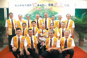 洪讚(中排中)榮獲模範父親表揚,大員林佛光人歡喜之情溢於言表。人間社記者賴炯福攝