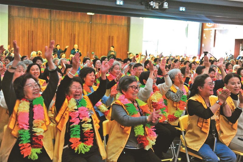 老菩薩們隨音樂節拍舞動,參加活動非常開心。圖/法華禪寺提供