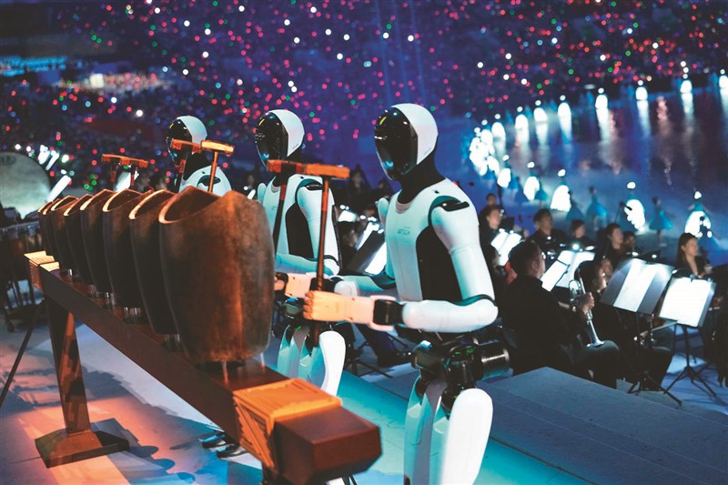 機器人9日在中國大陸全運會開幕式,表演彈奏禮樂。圖/新華社