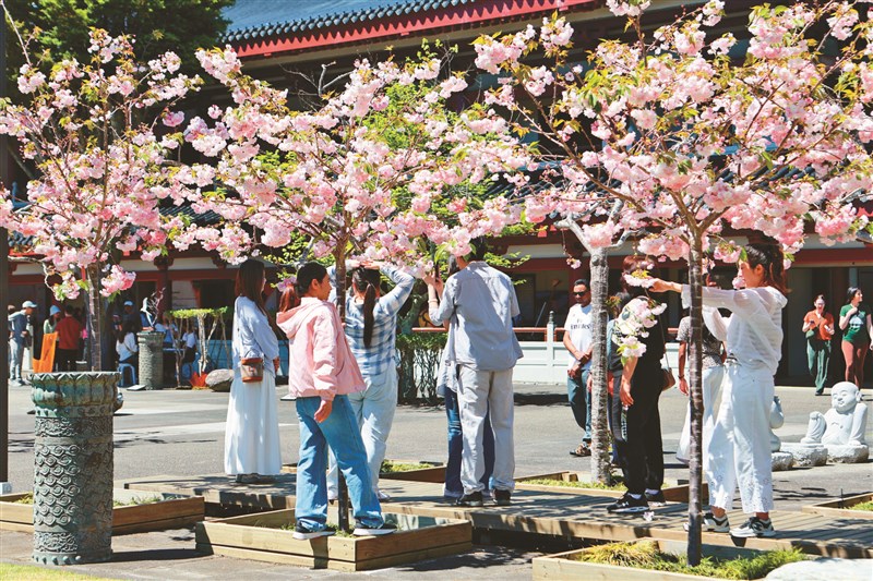 民眾前來北島佛光山賞櫻及體驗文化與藝術交融的饗宴。圖/紐西蘭北島佛光山提供