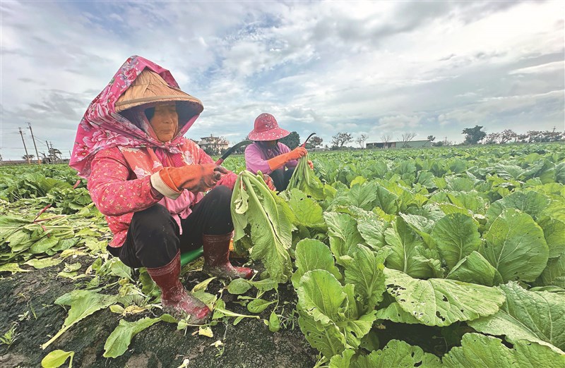 鳳凰颱風來襲,雲林菜農總動員,天未亮就拂曉搶收,免得好不容易長大的蔬菜被老天收走。圖/蔡維斌