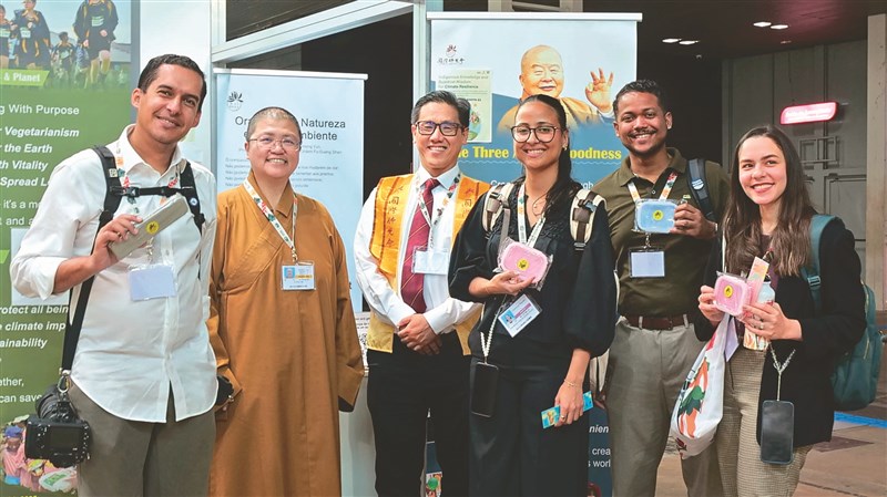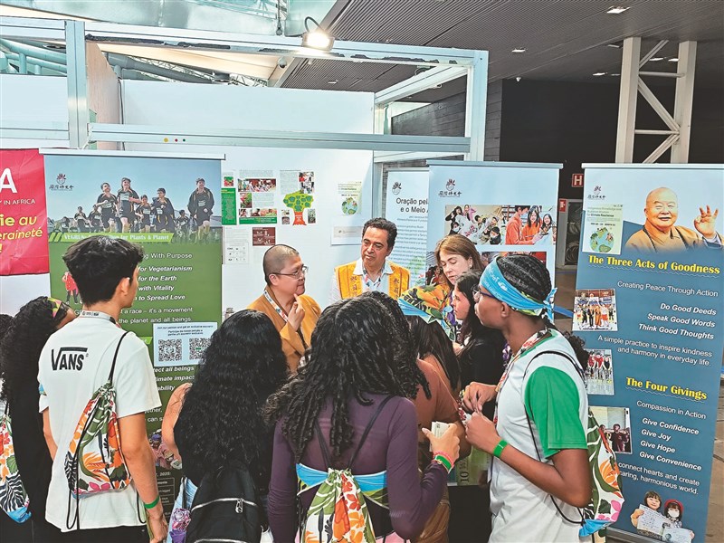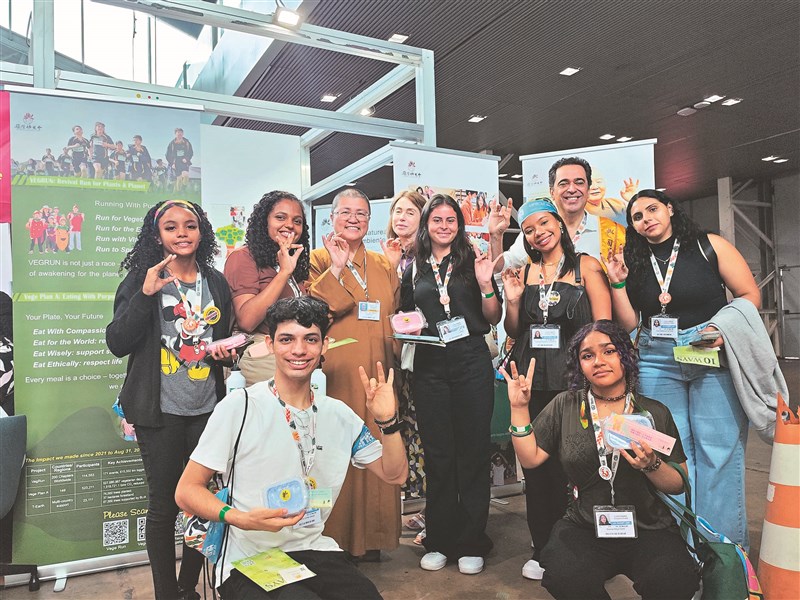 佛光會參與COP30 推廣環保與心保 人間社記者林育如、心主貝倫報導 |2025.11.13 語音朗讀 34觀看次 字級 大 中 小 國際佛光會以聯合國NGO的身分,今年第三次參加氣候變化大會,於展位介紹三好、四給的內容,呈現T-Earth、VegRun、蔬食A計劃等成果,獲得來自世界各地的代表團與會場眾多民眾響應。圖為妙佑法師(第2排左3)與連署蔬食A計劃的國際青年合影。圖/國際佛光會提供國際佛光會在COP30大會設有展場,國際青年們聆聽法師及佛光人介紹素食的好處。圖/國際佛光會提供多美尼加國家代表團到佛光會展區連署蔬食A計劃,並與妙佑法師(左2)合影。圖/國際佛光會提供 【人間社記者林育如、心主貝倫報導】2025年聯合國氣候變化綱要公約第30次締約方大會(COP30),於11月10日正式揭幕,為期兩周的峰會於亞馬遜雨林心臟地帶的巴西巴拉州(Pará)貝倫(Belem)市隆重登場。來自198國家地區代表及近60位國家領導人、環境部長等出席。國際佛光會今年再度與印度非營利組織VIKALP攜手參與,共同籌辦主題展攤與推廣「環保與心保」理念,佛光山南美洲總住持妙佑法師7日抵達貝倫主持籌備,巴西海習飛分會督導吳明偉前往支援。環保愛地球 具象同體共生理念VIKALP創辦人Himanshu Banker於8日抵達後,與妙佑法師展開深度對話。Banker分享該組織透過永續農業與社會林業,致力建構兼顧尊嚴生計與糧食安全的氣候適應模式。妙佑法師則分享佛教的「同體共生」理念,希望眾生彼此尊重、包容、平等,並強調心靈環保與生態平衡的相輔相成,期盼透過集體努力實現平等共榮。國際佛光會檀教師曾廣志10日抵達大會現場,隨即與妙佑法師、國際佛光會世界理事Miguel律師、巴西協會法律顧問Rosane律師討論平行會議工作分配。國際佛光會於12日以「原住民的知識與佛教的智慧:氣候變遷的因應之道」為題發表演說。秉承佛光山開山祖師星雲大師「同體共生」的根本思想,國際佛光會以聯合國NGO的身分,今年第三次參加氣候變化大會,今年增設展位介紹三好、四給的內容,呈現T-Earth、VegRun、蔬食A計劃等成果,獲得來自世界各地的代表團與會場中的義工、警衛、醫療、消防人員等很多民眾熱烈響應,並讚歎星雲大師倡導的「三好四給」及「環保與心保」理念,認為大師的理念為氣候行動注入了信仰與行動的力量。佛光人透過實際參與,傳遞「蔬食救地球」的永續願景,展現宗教團體在氣候議題上的實質貢獻。攤位現場氣氛熱烈,不少民眾在參與連署及瀏覽國際佛光會的資訊網站後表示,「原來吃素也能減碳救地球。」他們在了解蔬食減少碳排放、砍伐樹木及用水量後,主動帶著朋友回到攤位加入連署。蔬食A計劃 宣傳素食減碳訴求多美尼加共和國國家代表團副團長Gabriela Marquez Gonzalez特地帶領一行年輕團員,前來簽署「蔬食A計劃」參與素食減碳救地球的行動。交談中Gabriela與妙佑法師提及團長因病接受治療,妙佑法師主動提議帶領團員靜坐安心,也為團長祈福祝願康復。Gabriela深受感動,還邀請法師至多美尼加國家攤位帶領禪修,安定團員的身心。值得一提的是,孟加拉的非政府組織孟加拉原住民知識資源中心(Bangladesh Resource Center for Indigenous Knowledge)教育文化與多元性主任Pavel Partha,特地造訪佛光會展攤。與國際佛光會檀教師曾廣志對談中,Pavel表示,佛光會是會場中少數以信仰為主軸的攤位,內容與計畫均極具啟發性,更高度肯定星雲大師倡導的「環保與心保」理念,「全球宗教界在氣候行動方面仍有非常大的提升空間,而佛光山與佛光會積極參與環保與心保,在COP30的大會廣為分享經驗,堪為其他宗教團體與組織的榜樣」。 前一篇文章 西來寺朝山 佛光人發菩提心 下一篇文章 法華禪寺皈依典禮 佛子開啟修行旅程 熱門新聞 01WTA、ATP年終賽 獎金創新高2025.11.0702健保補充保費變革 政院急踩煞車2025.11.0703補充纖維、鈣、鎂、鉀 預防多種疾病風險2025.11.1104再闖WTA年終賽 謝淑薇力拚第2冠2025.11.0705【寬鼎畫語】 看不見的真相2025.11.1006【詩】再現綠川2025.11.0707佛光山大學校長論壇 盼教育融入佛法2025.11.0808【樹博士系列】土壤的祕密XV 水稻田減排新觀念IV 土地的溫柔革命 雲林大埤寫益生菌奇蹟2025.11.0909佛光山深耕紐西蘭 毛利族傳統禮致謝2025.11.0710星雲大師全集【傳記】百年佛緣─生活篇 我的衣食住行 5-52025.11.07 訂閱電子報 台北市 天氣預報 台灣一週天氣預報 相關報導 新馬寺大專佛學生活營 學習生活中覺有情法華禪寺皈依典禮 佛子開啟修行旅程修行入廚慈悲入味 台韓寺剎飲食交流印尼佛教大學、佛光山叢林學院 簽MOU多倫多佛光山 獲頒建築文化遺產獎比利時國小師生 靜坐、抄心經