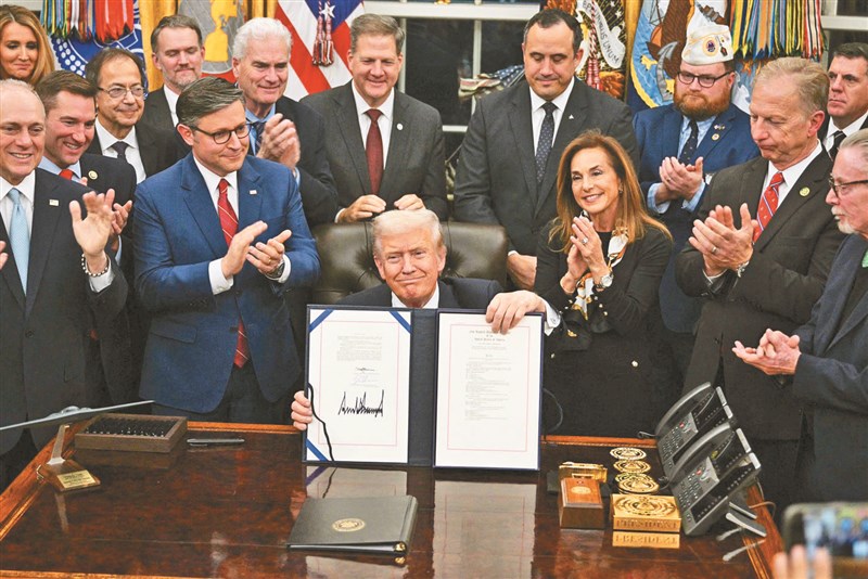 【本報綜合外電報導】美國共和黨掌控的眾議院美東時間12日晚間以222票對209票,通過爭議激烈的臨時開支法案,火速送往白宮,總統川普當即在橢圓辦公室簽署法案成為法律,為長達43天的史上最長政府停擺,畫下句點,正式重啟政府運作。