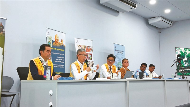 國際佛光會檀╱教講師聯誼委員會副主任委員曾廣志,介紹佛光山開山祖師星雲大師人間佛教的主要精神,以及大師所倡議的環保與心保的理念,他闡明佛光會與綠色基金會如何以自然解方為核心,發起「T-Earth森众倡議」,以建構一條由社區、信仰、科學與公益交織而成的生態修復路徑。發表會中也介紹「蔬食A計劃」以及全球復蔬公益路跑的成果。