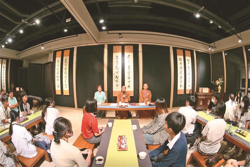依來法師(前排中)、妙璋法師(前排右)於座談會上,鼓勵學生安心學業、邁向光明。圖/人間社記者李崑銘