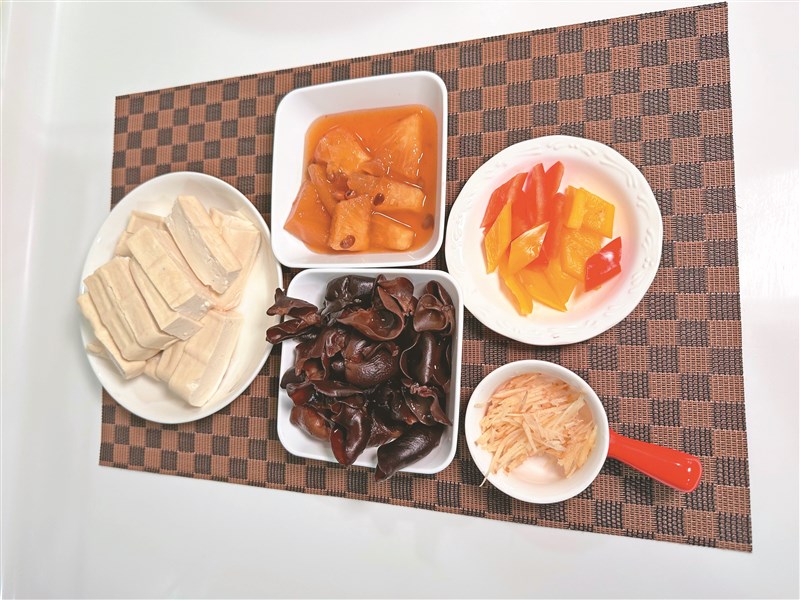 豆腐、黑木耳、彩椒、蔭醬鳳梨、薑絲、味霖