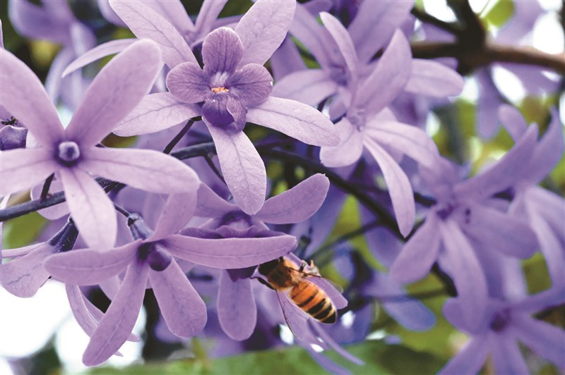 藍紫花盛開,吸引蜜蜂採蜜。圖/步悠