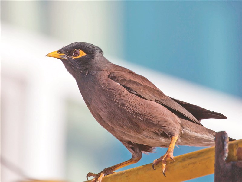 除了這城市三寶:麻雀、白頭翁、綠繡眼,豐富我平凡的日子外,最近來了不速之客,名喚「家八哥」。這鳥委實不討人歡心,長得醜不打緊,叫聲更惹人厭。感覺就是一身灰黑,眼睛、腳和嘴喙都是黃色,羽翼上有白色斑,飛行時更為明顯。更突兀的是,眼睛周圍沒有羽毛而是裸露的黃色皮膚,而那「噶!噶!噶!」尖銳粗啞的叫聲很虐耳。
