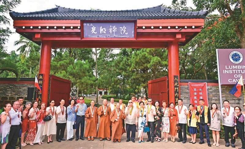 位於菲律賓馬尼拉灣南岸甲米地市的光明禪院,於11月14日揭牌啟用,為人間佛教增添弘法新頁。恭請佛光山住持心保和尚(左12)主持揭牌儀式,逾400位佛光人齊聚見證。圖/人間社記者何曰昌