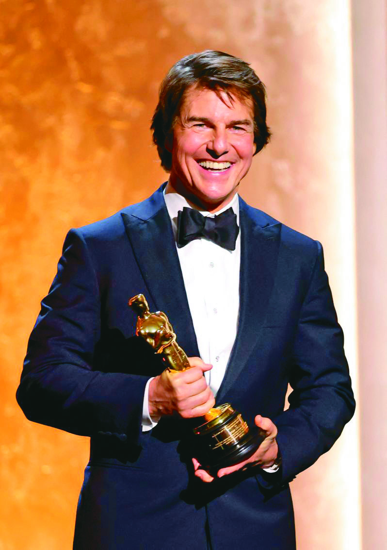湯姆克魯斯拿到生涯首座奧斯卡獎座。圖/法新社