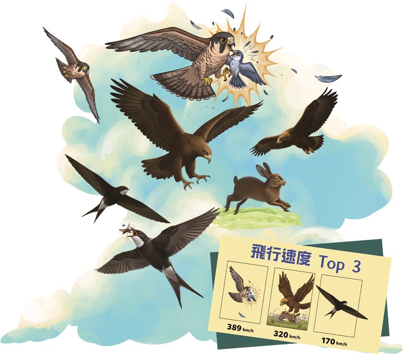 以上最快速飛行的前三名動物,牠們為了減少氣流的阻力與能快速飛行的能力,在外觀型態、身體結構或生理方面則會做適當的改變。是不是很奧祕且有趣呢?