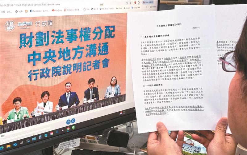 【本報台北訊】朝野針對《財政收支劃分法》再交鋒,行政院昨再次邀集各地方政府交換意見,主要聚焦「事權劃分」。主計總處會後轉述,多數地方政府支持行政院版劃分原則,但提出3大訴求做為配套。